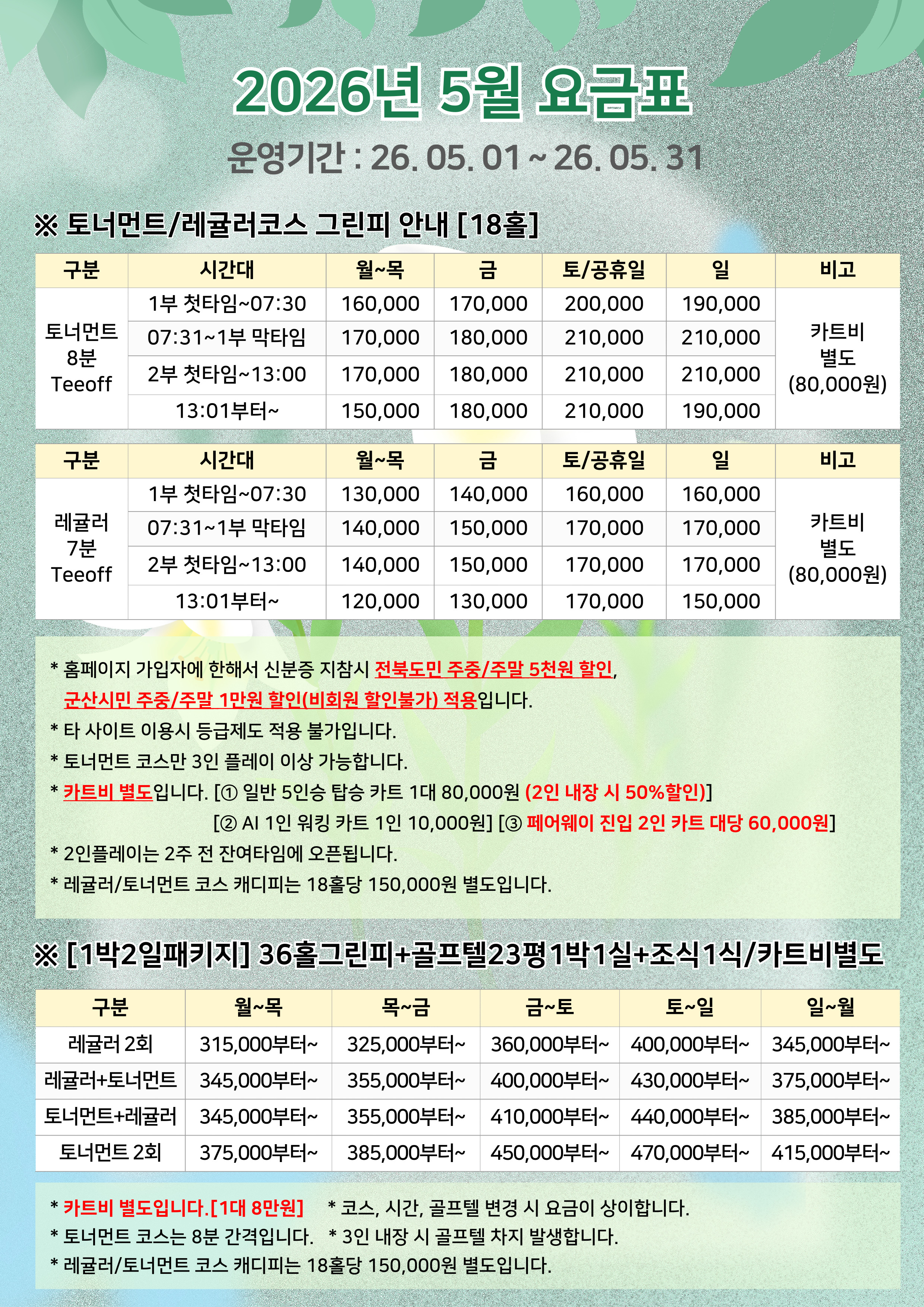 [공지사항] 2026년 5월 요금표