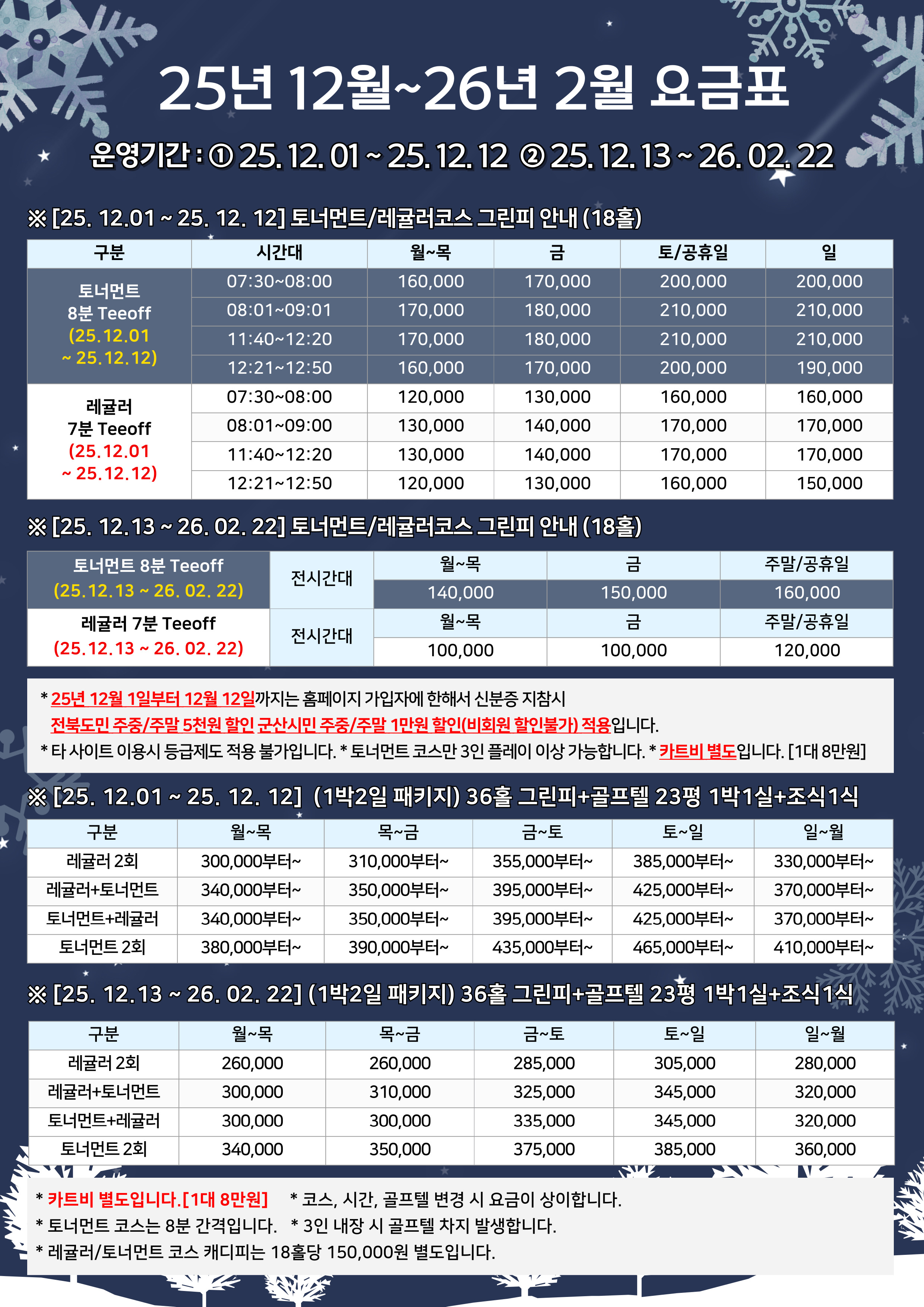 [공지사항] 2025년 12월 ~2026년 2월 요금표